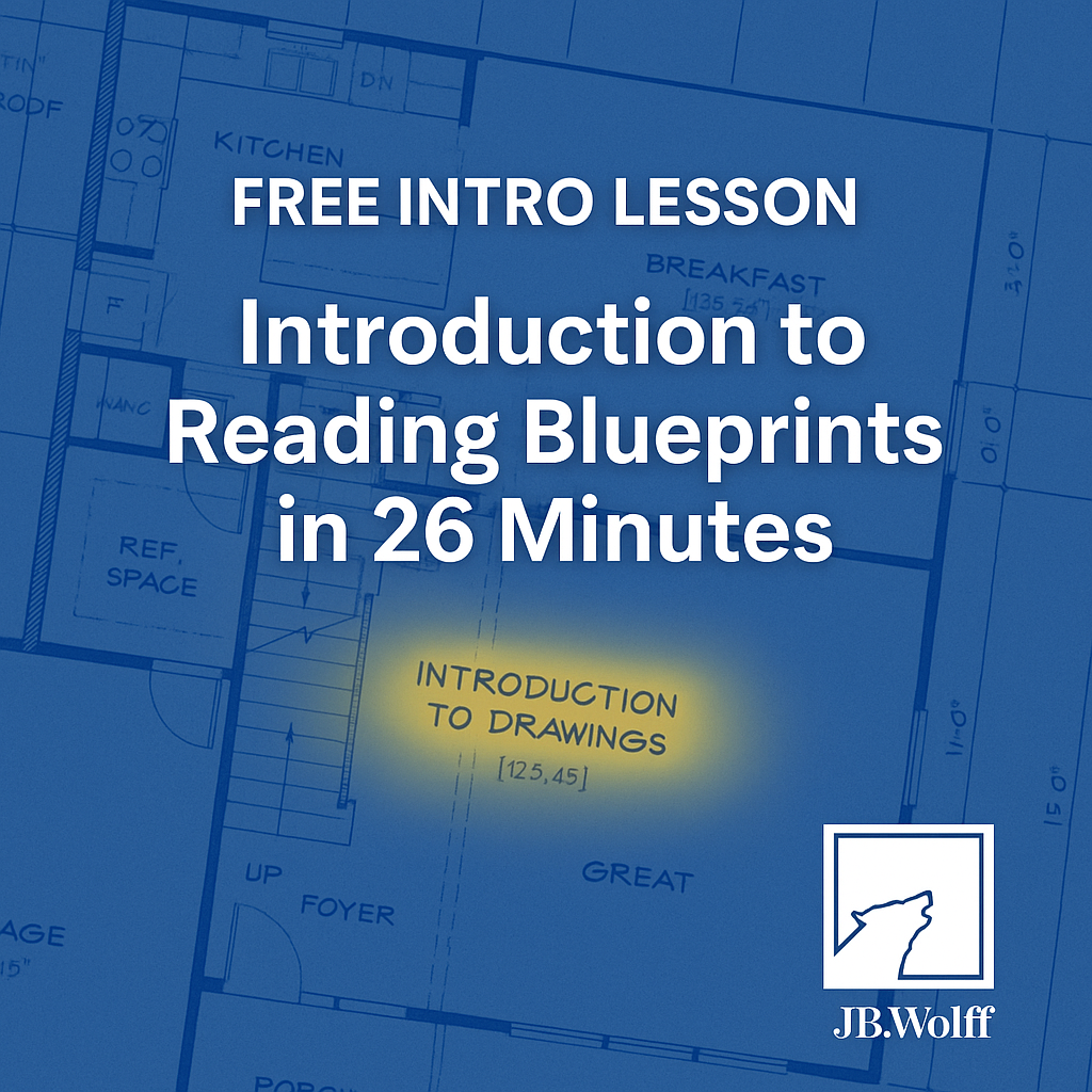 In this free 26-minute lesson, JB walks you step-by-step through the very first pages of a real set of residential construction blueprints. You’ll learn how to navigate the cover sheet, understand basic symbols, the Drawing Index, Sheet Notes, Schedules and start building the confidence to read plans on your own. Whether you’re brand-new to construction, a student just starting out, or a working pro who’s tired of guessing, this intro will give you the foundation you need. This is just the beginning — if you enjoy this lesson, stay tuned for the full self-paced Blueprint Reading Course, launching October 31st.